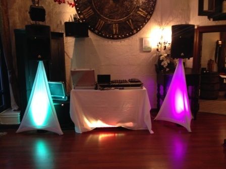 Her ble det levert 2 stk høyttalere, wrapz på stativer, dj utstyr, 2 discolyseffekter og 6 stk led uplight.
